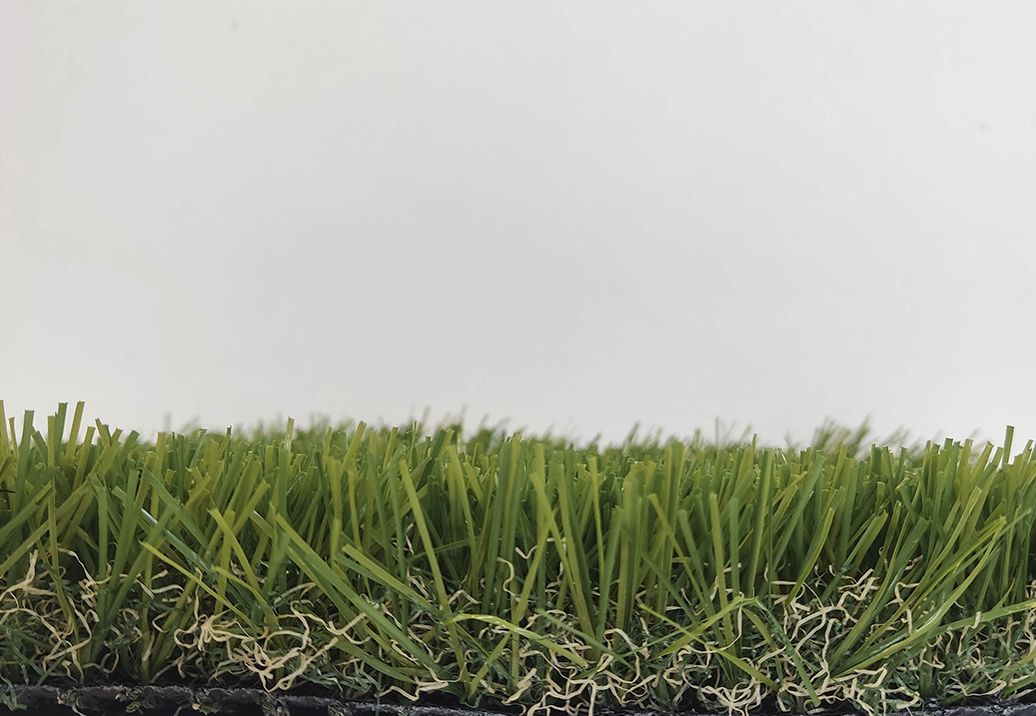 • Combinación de hilos: Monofilamento y Fibra rizada en tonos verde y beige-café, creando un aspecto natural y variado.